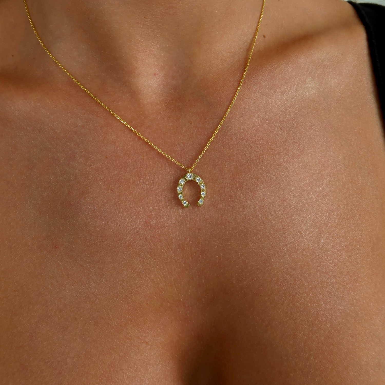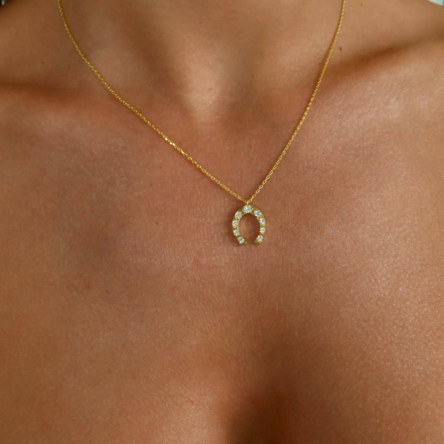 Taşlı At Nalı Şans Kolye, 925 ayar gümüştür. Gold seçeneğinde altın kaplama yapılmaktadır. Zincir uzunluğu 40 cm + 5 cm uzatma zincirlidir.
