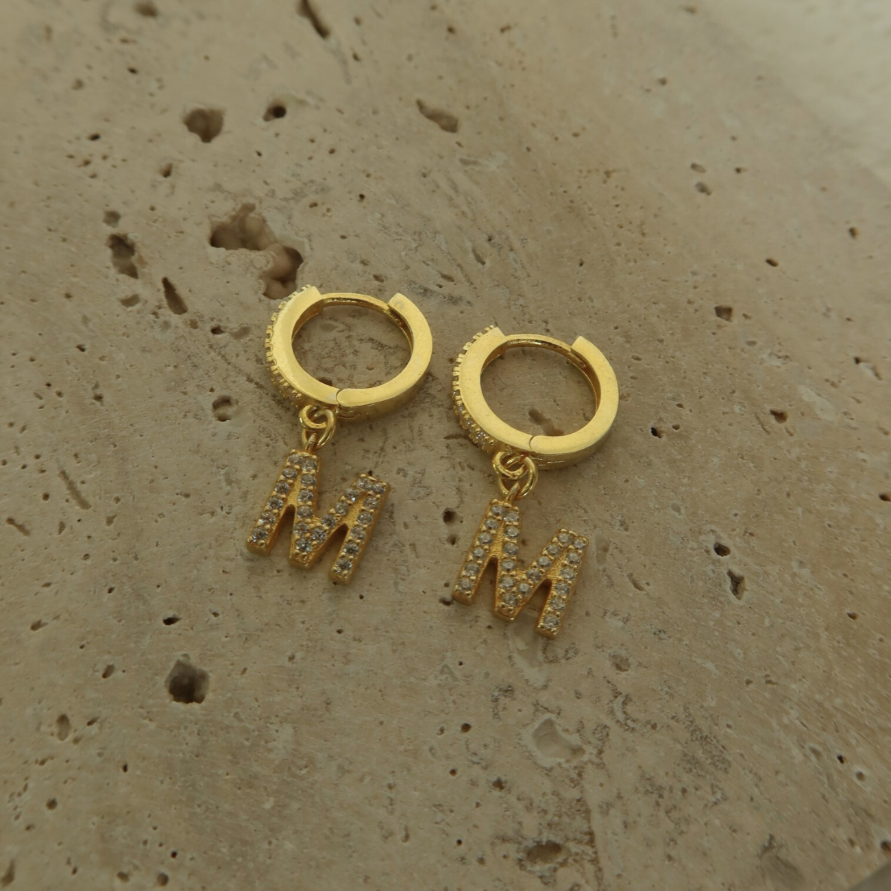 Taşlı Harf Küpe, 925 ayar gümüştür. Gold seçeneğinde altın kaplama yapılmaktadır. Kapalıçarşı’daki atölyemizde ustalıkla üretilmiştir.