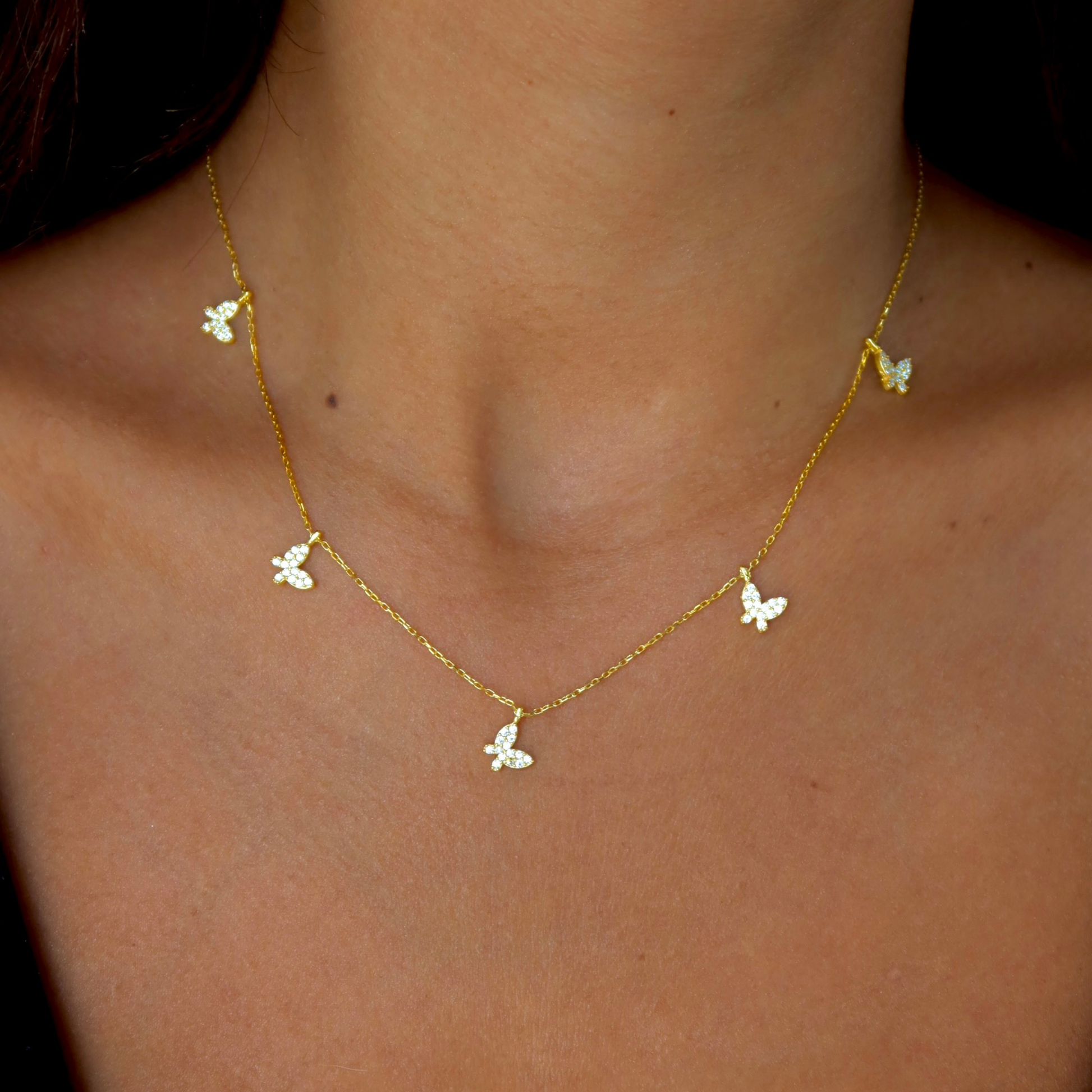 925 Gümüş | Taşlı Kelebek Charm Kolye
