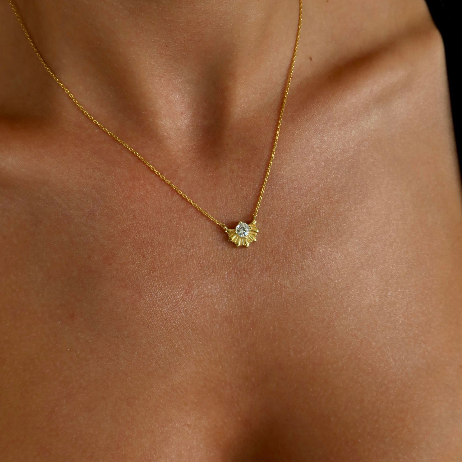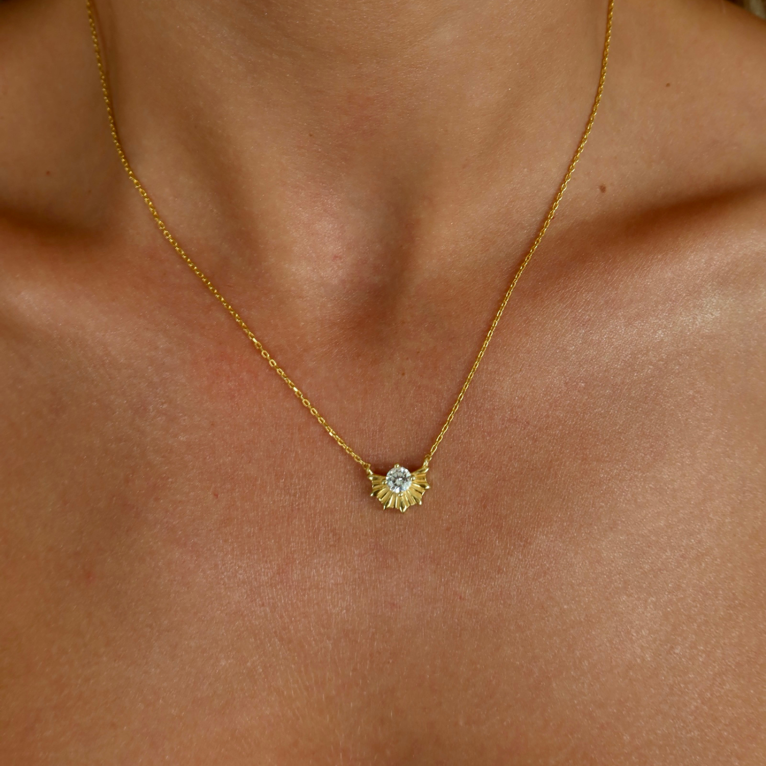 Taşlı Yelpaze Kolye, 925 ayar gümüştür. Gold seçeneğinde altın kaplama yapılmaktadır. Zincir uzunluğu 40 cm + 5 cm uzatma zincirlidir.